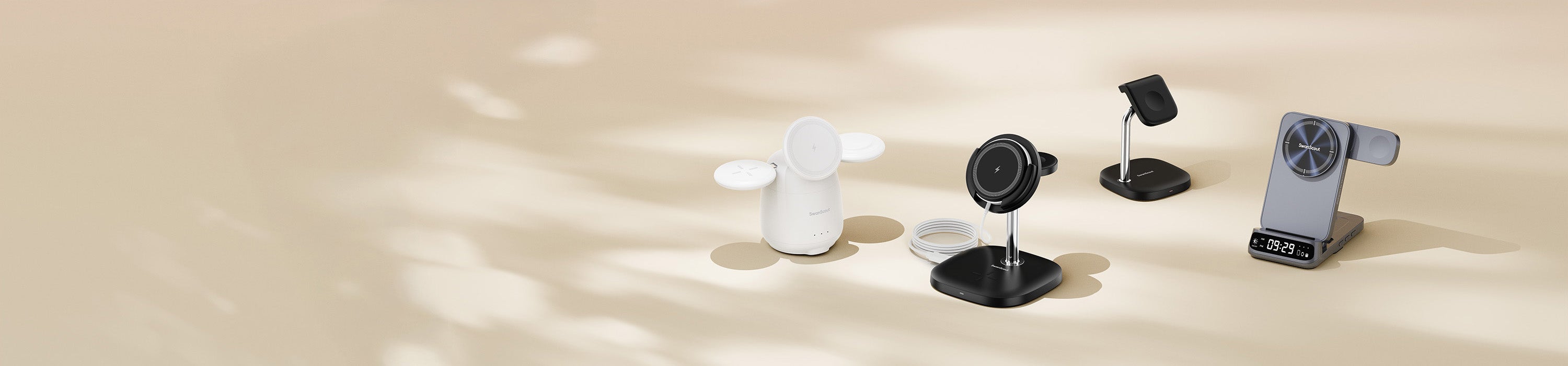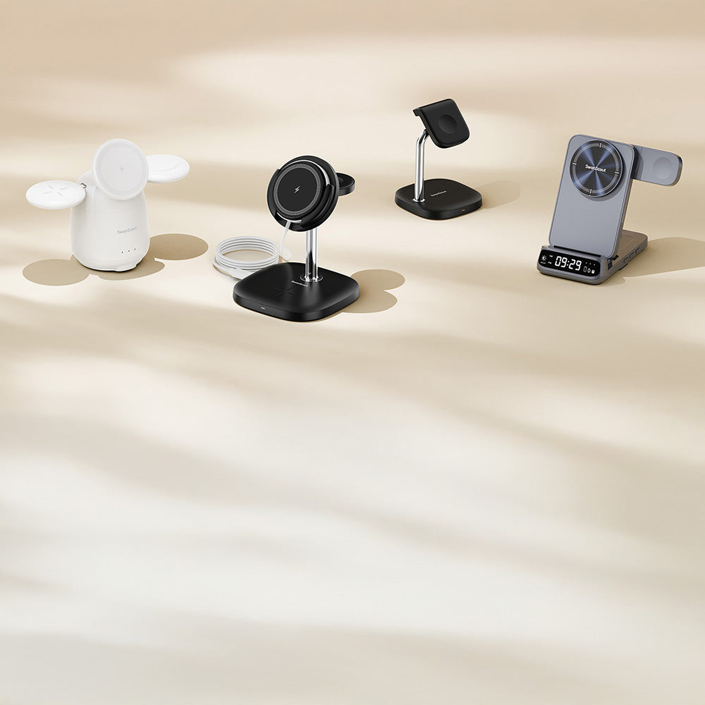 Зарядните устройства SwanScout поддържат смартфони и слушалки с Qi технология от всички марки, използвайки интелигентно разпределение на мощността, за да регулират изходната мощност за всяко устройство. За смарт часовниците, специалният модул за зареждане е пригоден за конкретни марки, осигурявайки прецизно подравняване и безопасна работа. С PD адаптер, зарядните устройства SwanScout осигуряват оптимизирана изходна мощност до 15W, балансирайки бърза производителност със защита на батерията.