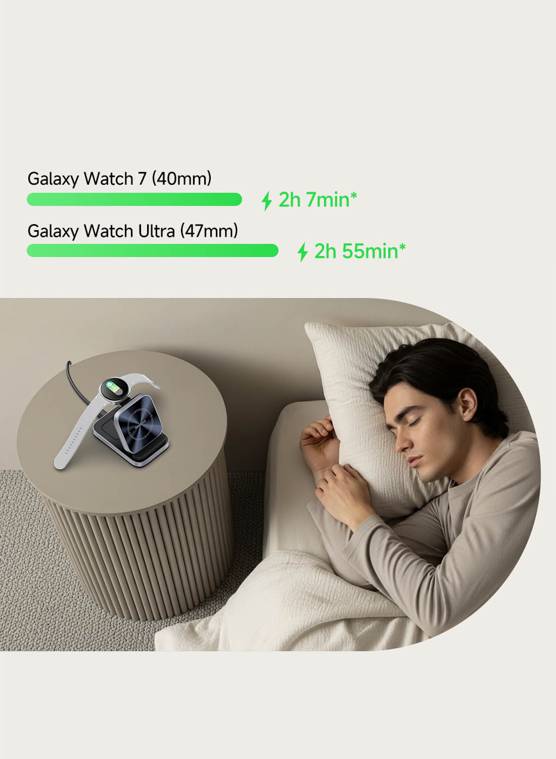 Starten Sie Ihren Tag mit allen Geräten aufgeladen, ohne Sorge, morgens einen niedrigen Batteriestand zu haben.
