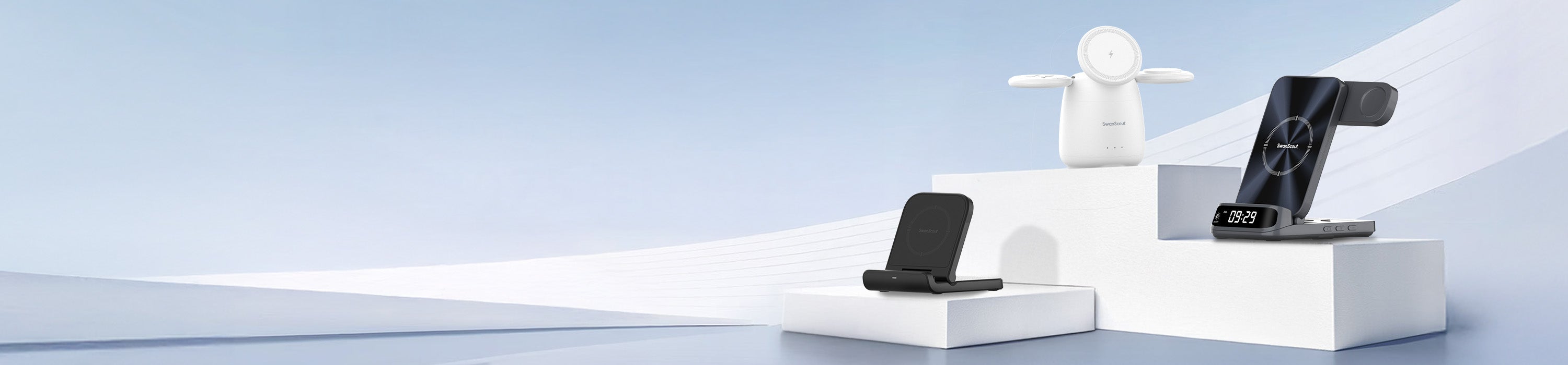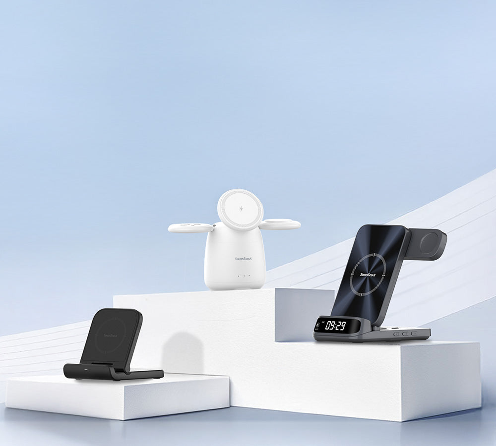 SwanScout 707S is a stable and elegant 3-in-1 wireless charger compatible with Samsung devices.The SwanScout 707S is a sleek Samsung wireless charging station built for daily efficiency and smart device organization.