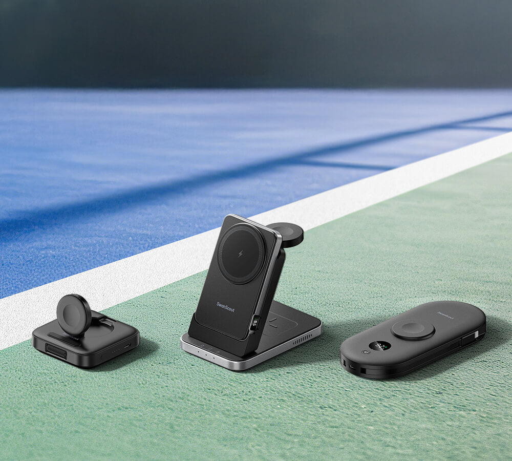 SwanScout 304M -varavirtalähteissä on integroitu siru, joka priorisoi puhelimen latauksen telinetilassa ennen varavirtalähteen lataamista, mahdollistaen samanaikaisen pikalatauksen iPhone 17:lle, Apple Watch -sarjalle ja AirPodeille. Tämä tehokas priorisointi minimoi odotusajat ja pitää Apple-laitteesi valmiina silloin, kun niillä on eniten merkitystä.
