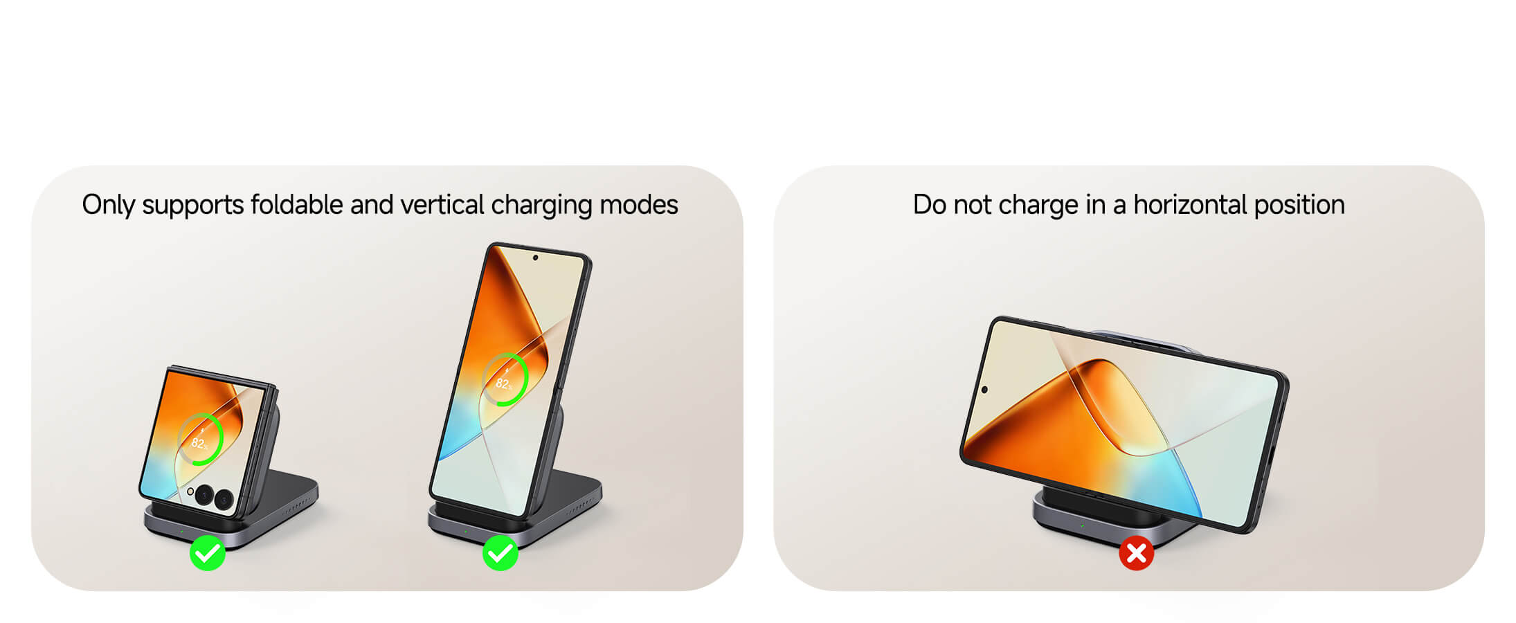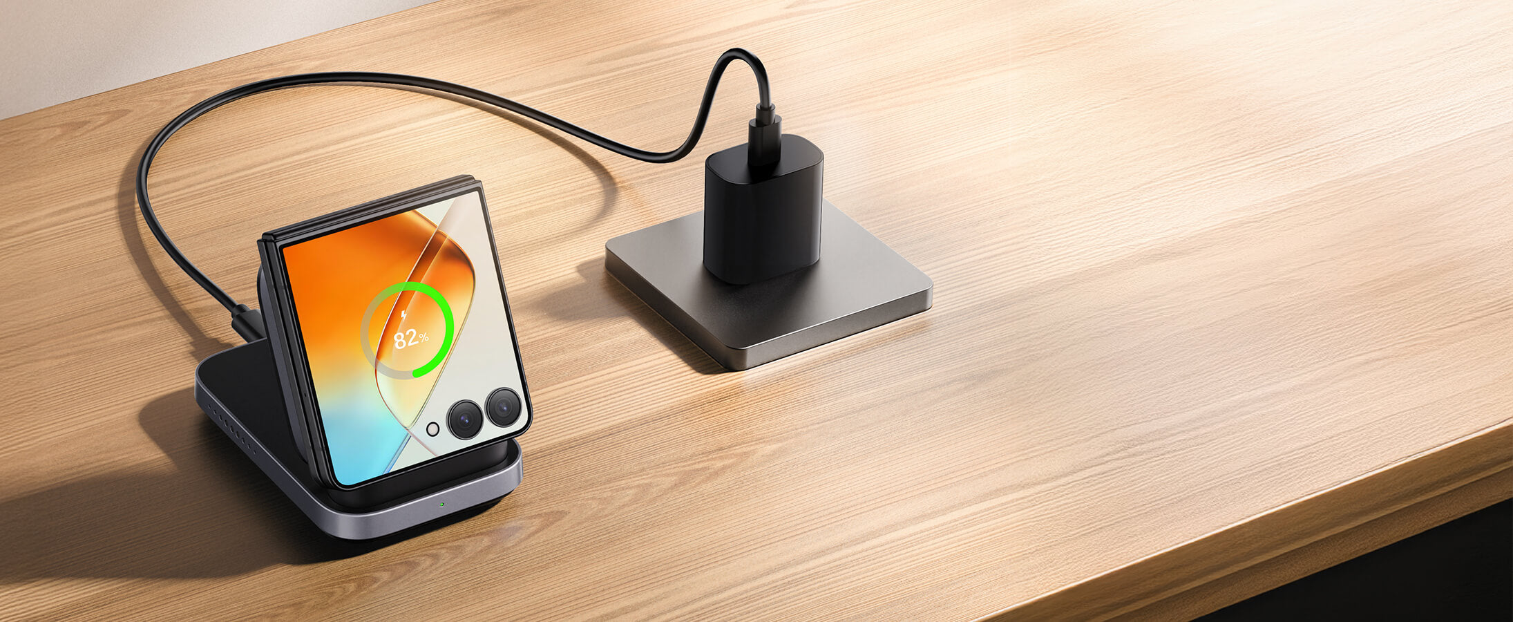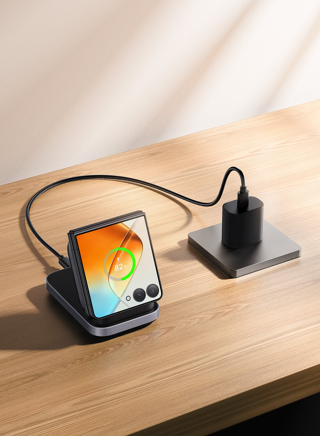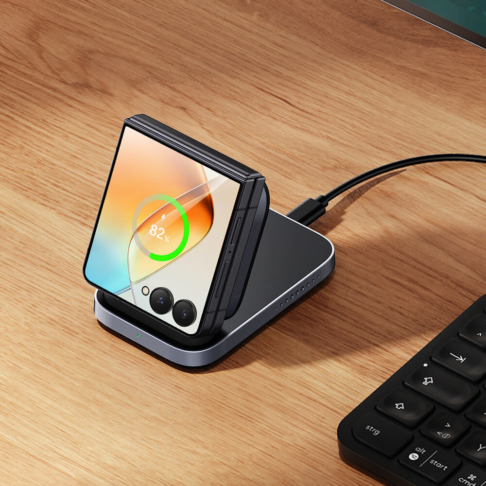 • Optimoitu Z Flip- ja Razr -laitteille: Yhteensopiva Samsung Z Flip- ja Motorola Razr -laitteiden kanssa vakaata nopeaa langatonta latausta varten.