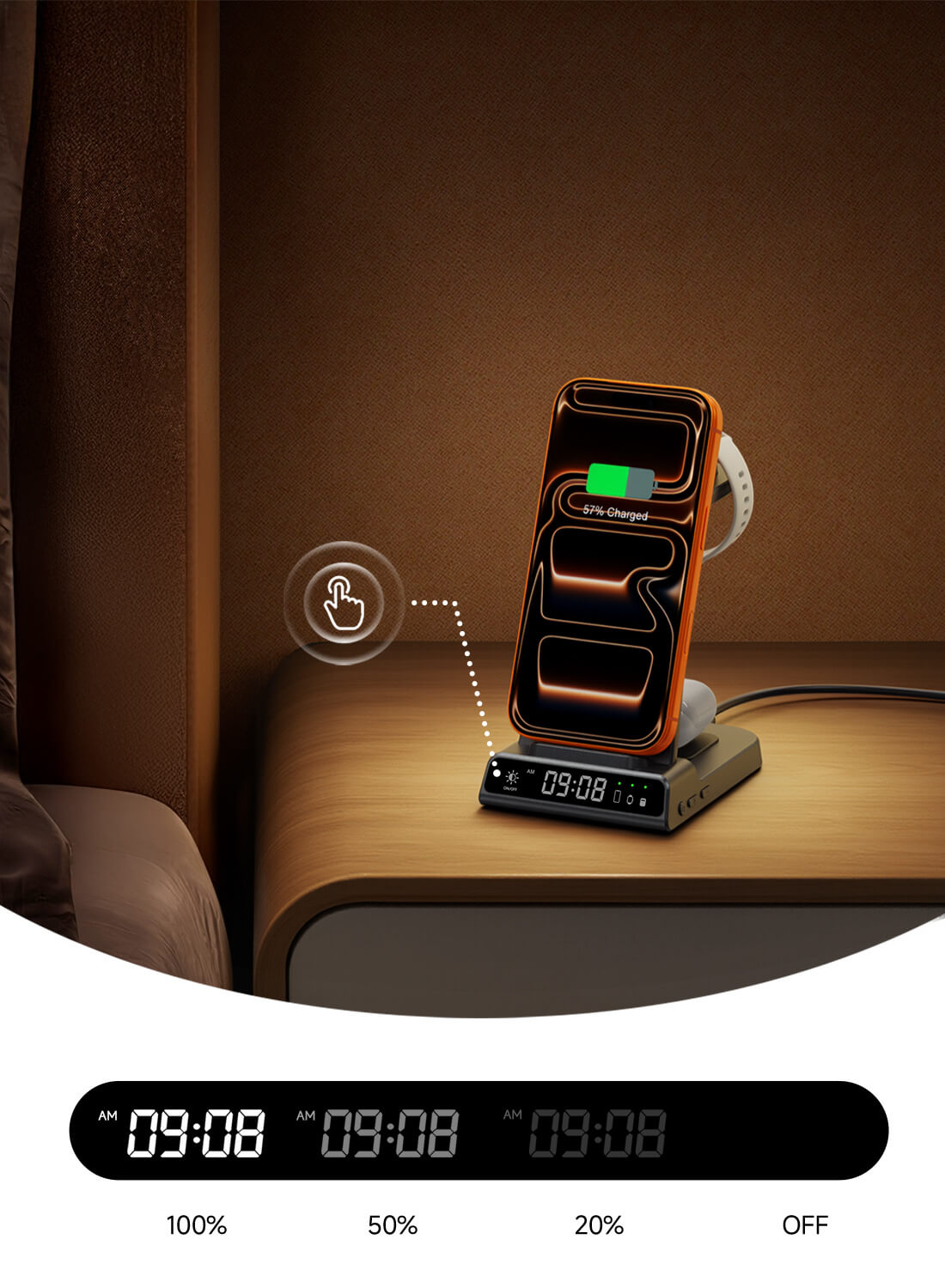 Orologio con luminosità regolabile, perfetto per la visualizzazione notturna, assicurando che i dispositivi siano completamente carichi ogni notte