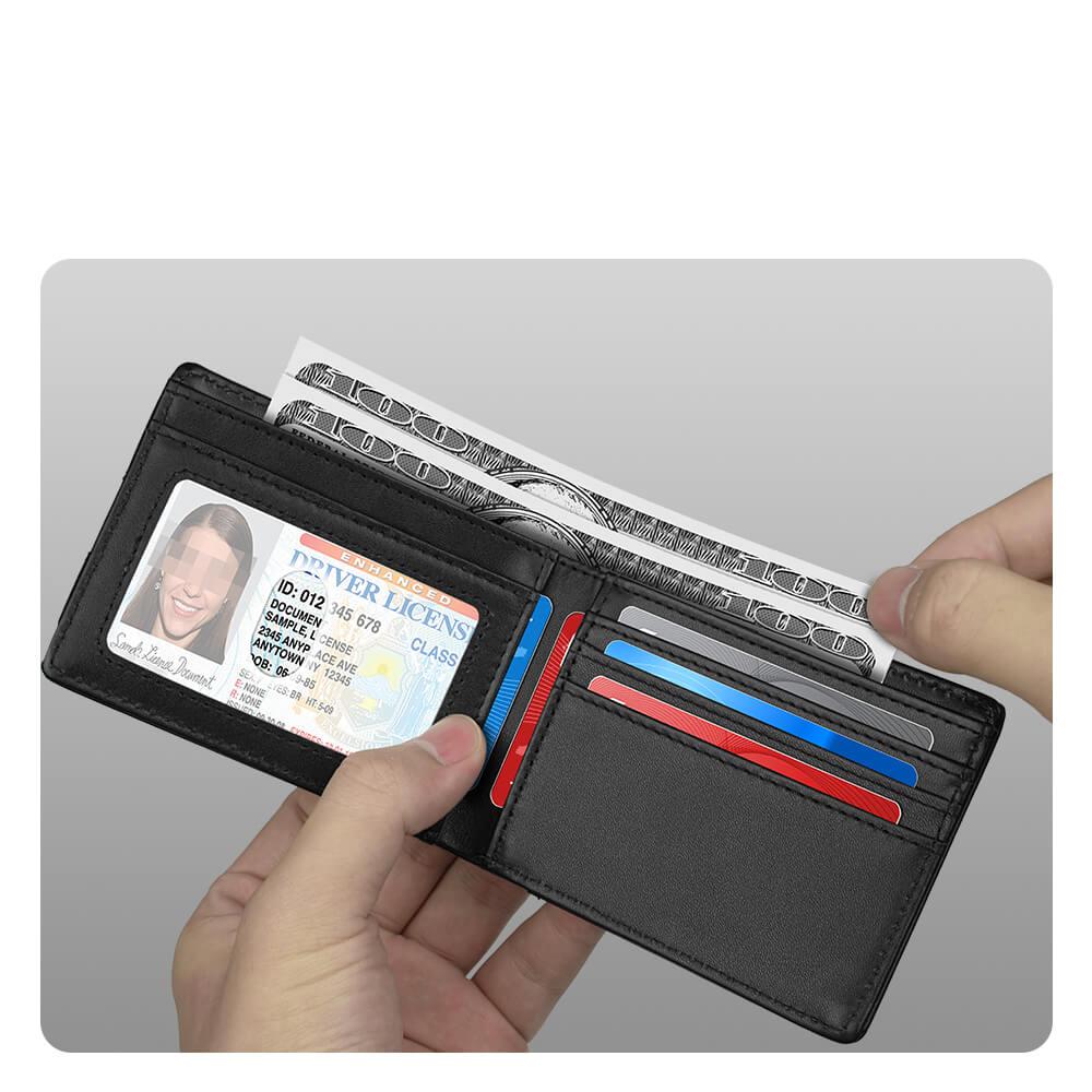 Il portafoglio ha 8 slot per carte, 1 finestra per carta d’identità e 1 tasca per contanti per banconote. È sufficiente per trasportare le carte usate quotidianamente.