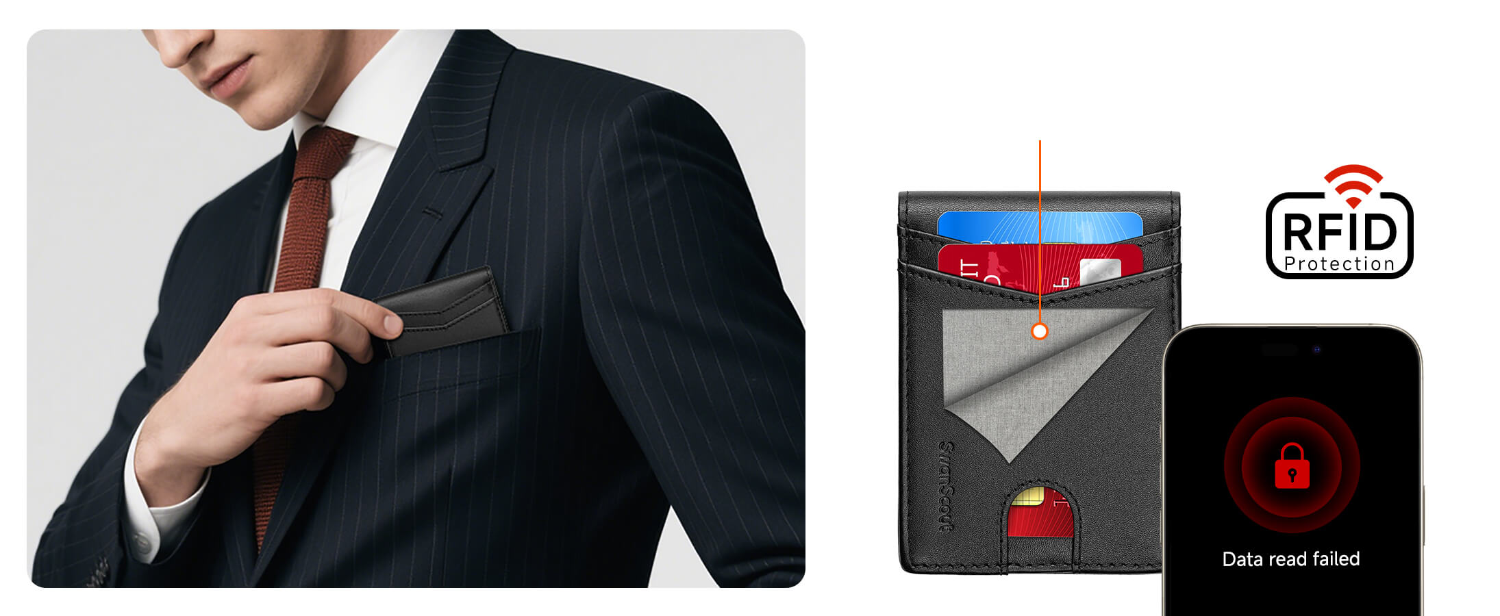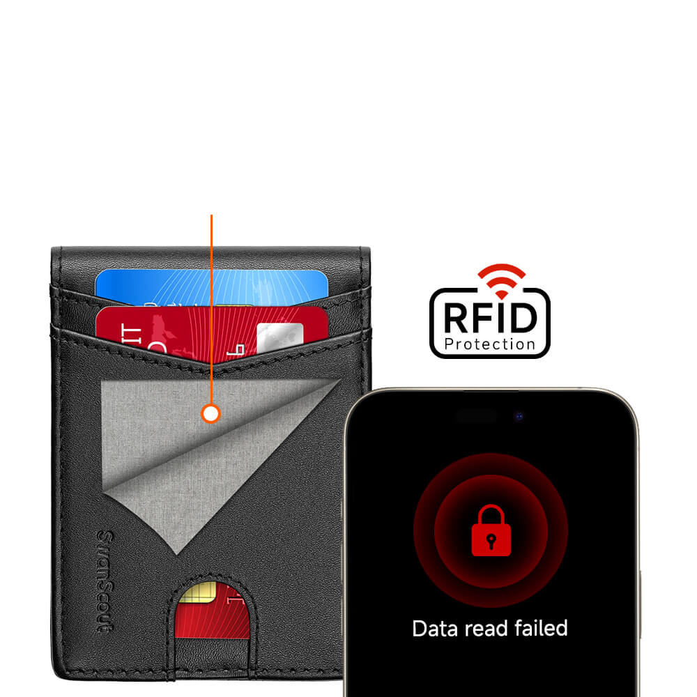 - La protezione RFID impedisce la scansione elettronica non autorizzata delle tue carte.