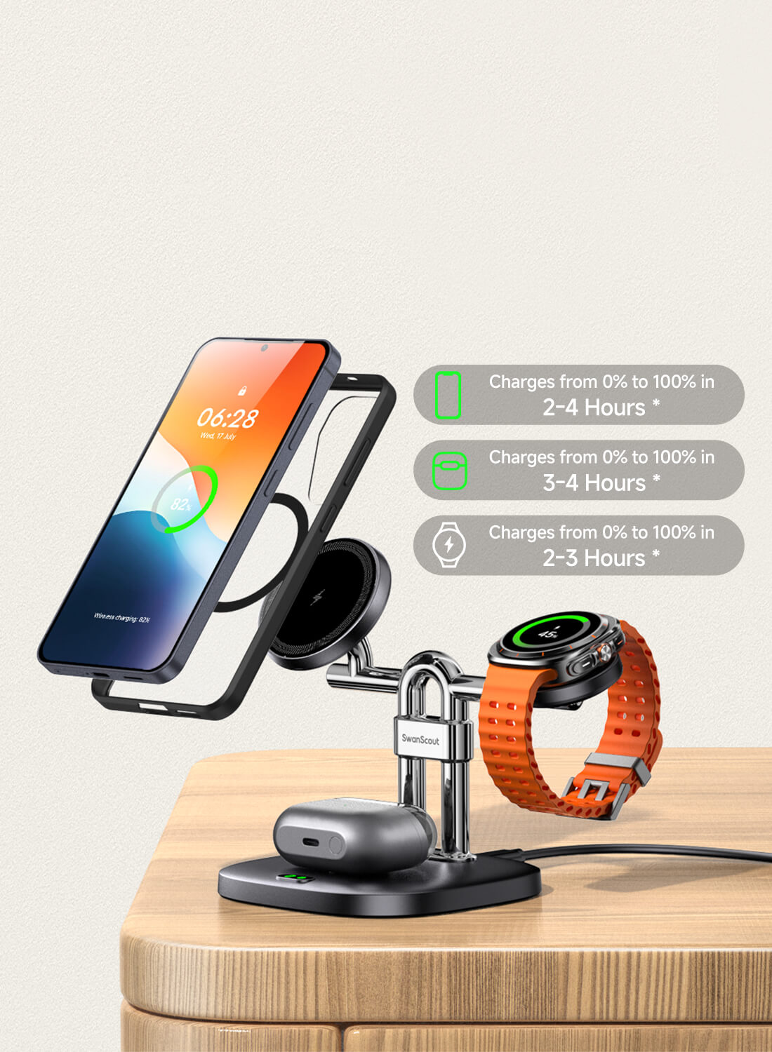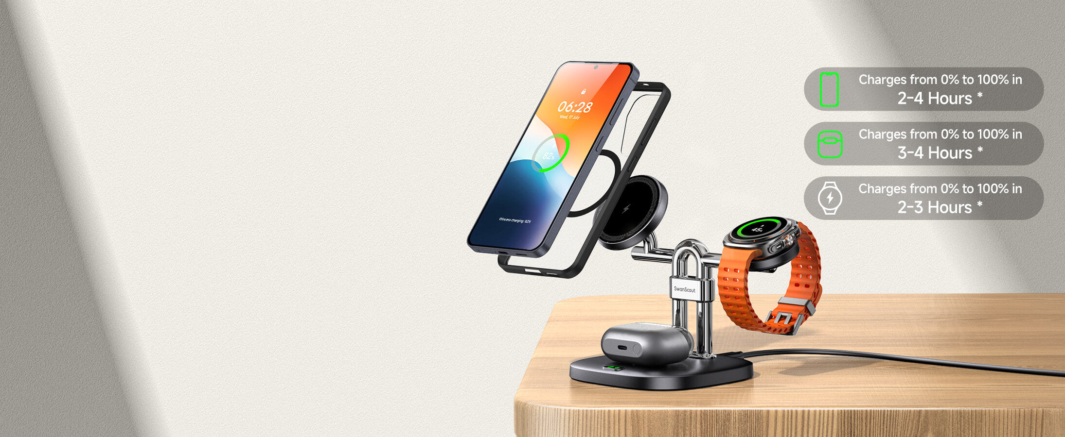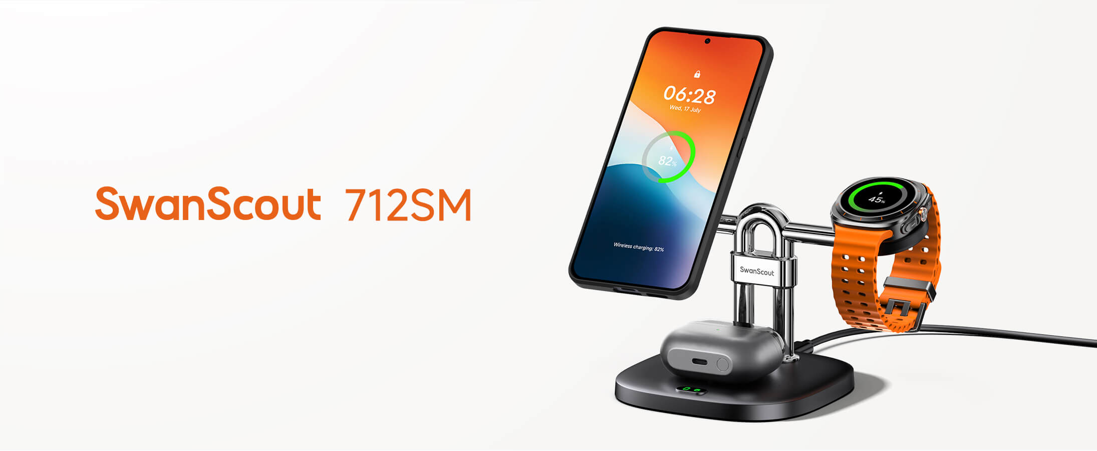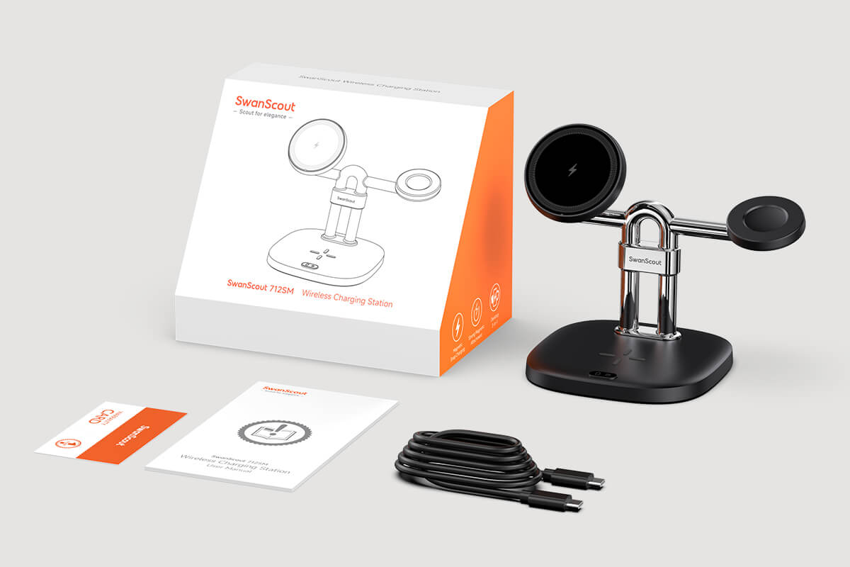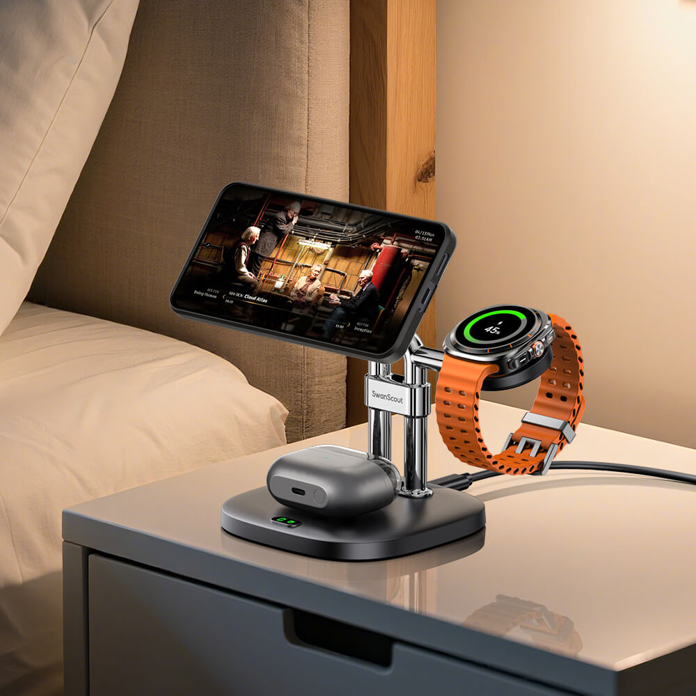 SwanScout 712SM – Estación de carga inalámbrica magnética 3 en 1 para Samsung