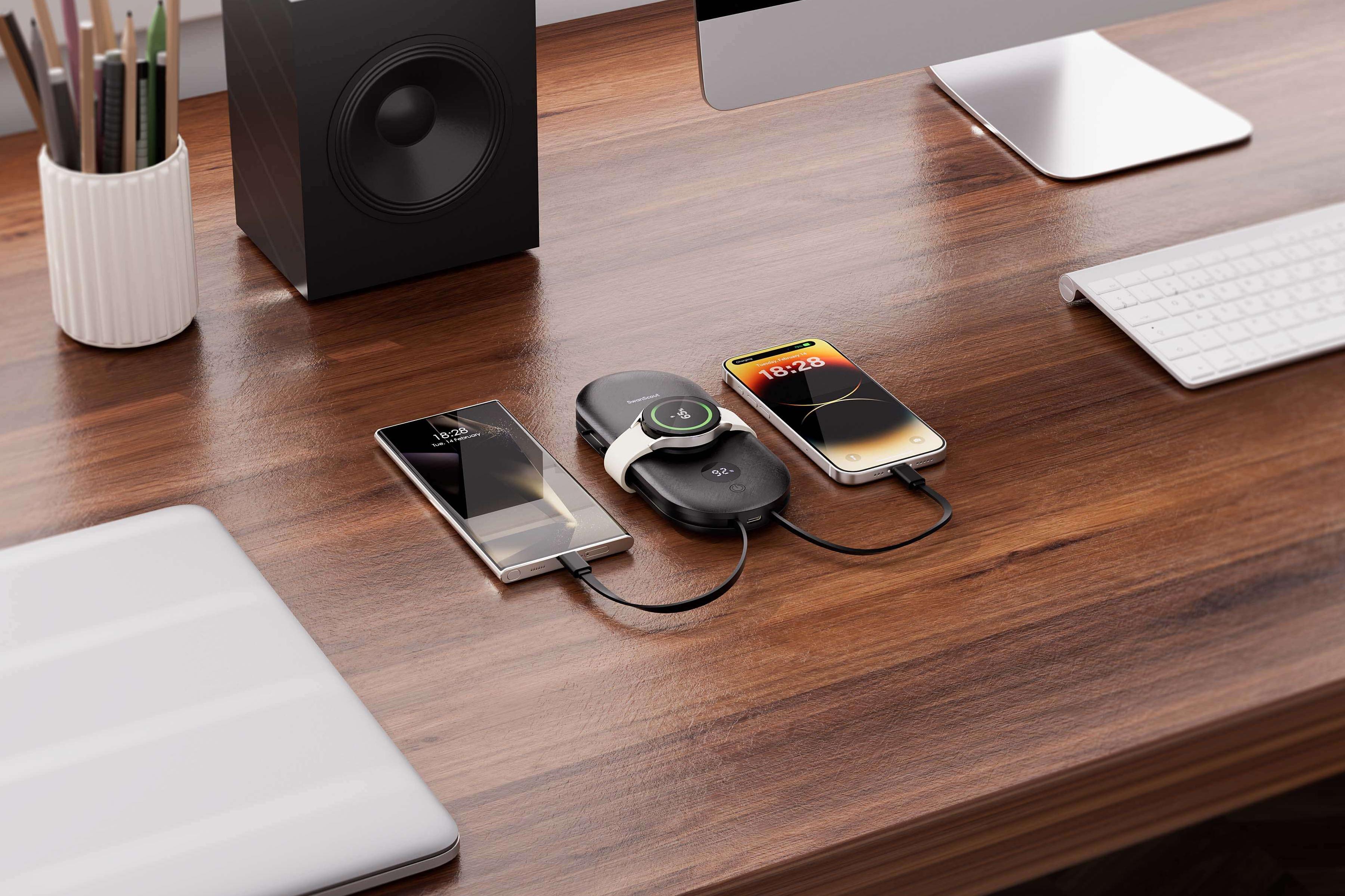 Samsung 302S power banks offer multi-device compatibility with wireless charging zones and built-in Lightning and USB-C cables, simultaneously powering Galaxy S25, Galaxy Watch Series, and other Samsung devices. Intelligent power distribution ensures optimal charging speeds for each, preventing overloads and seamlessly fitting your multi-device lifestyle.
