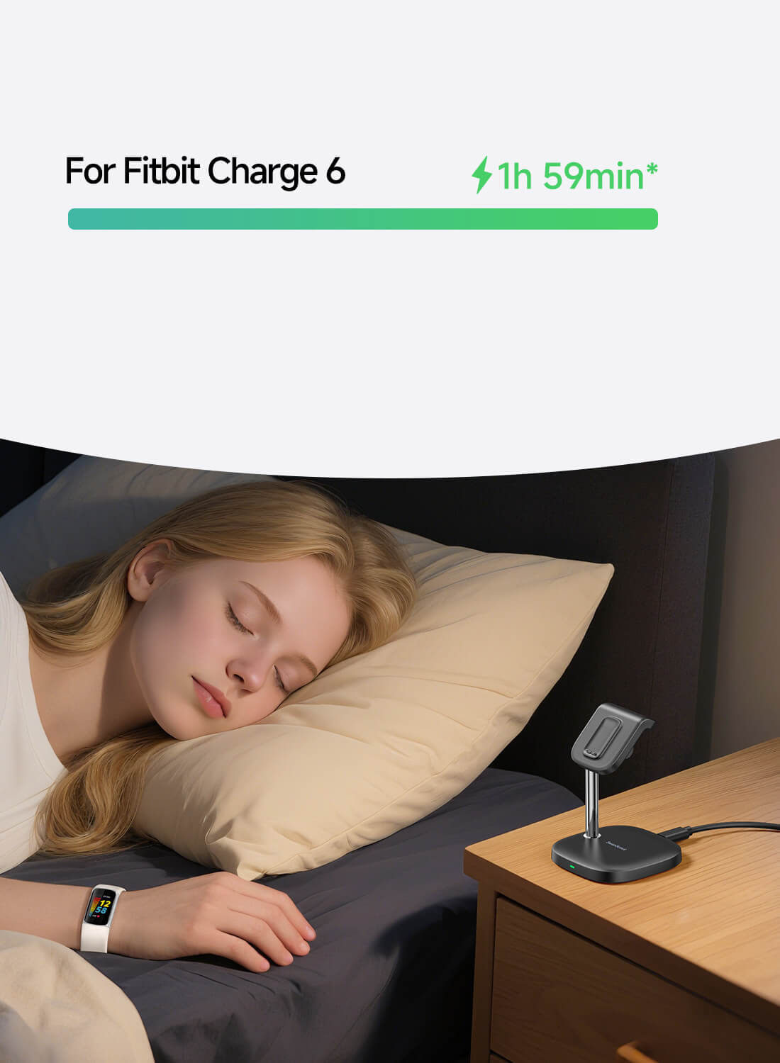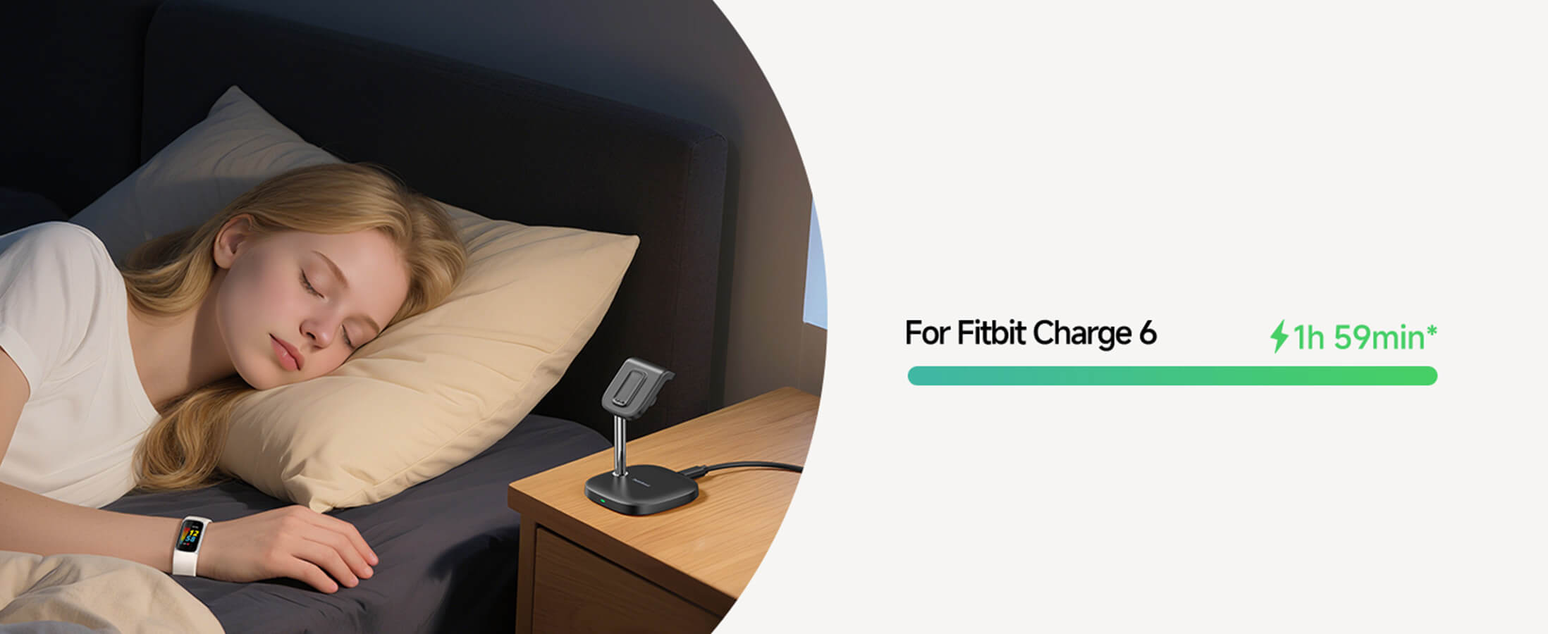- Proiectat exclusiv pentru Fitbit Charge 6/5 și Luxe, cu un suport vertical elegant.