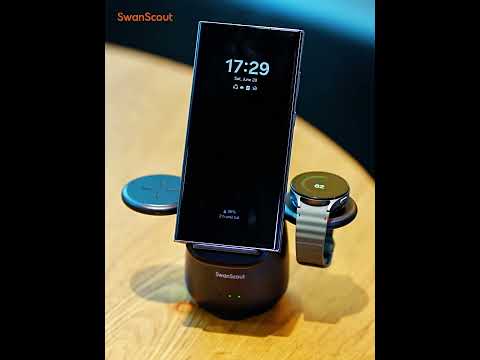SwanScout 707S is a stable and elegant 3-in-1 wireless charger compatible with Samsung devices.
