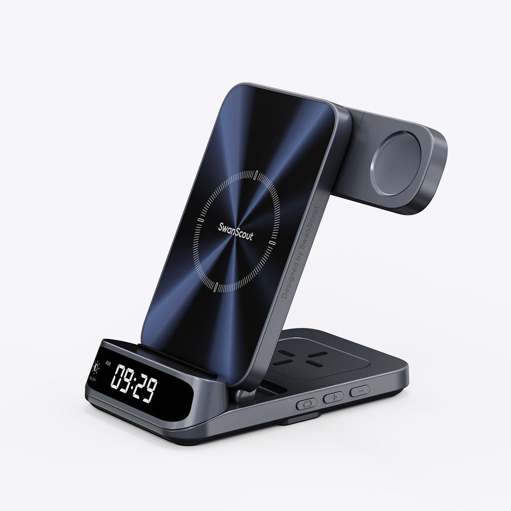 SwanScout 為三星用戶提供各種客製化無線充電器,從個人使用的緊湊型三合一設備到家庭使用的雙手機和雙手錶型號,應有盡有。這些充電器專為個人和共享環境設計,可同時為多設備充電,最大限度地減少等待時間,同時提高效率。